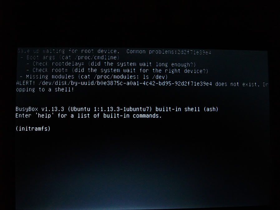 Nevím ale zkusil bych livecd a zkontrolovat hdd protože tam píše něco o tom že /dev/disk ............... does not exist, jako že neexistuje.