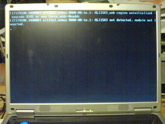 pri bootu se mi nezobrazuje boot screen z grubu, v /boot/grub/menu.lst je nastaven. Casem k cerne obrazovce s blikajicim kurzorem pribyla i chybova hlaska...viz obr.