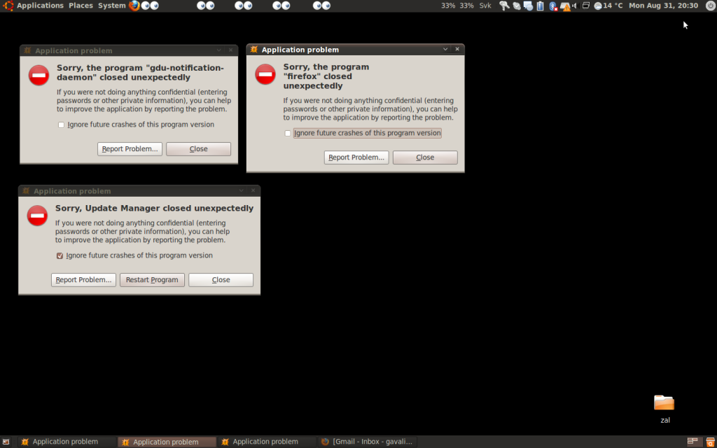 Edit:Zabudol som pripisat ze Update Manager tez nejde. btw nejde spustit. skusim updatnut pomocou apt-get