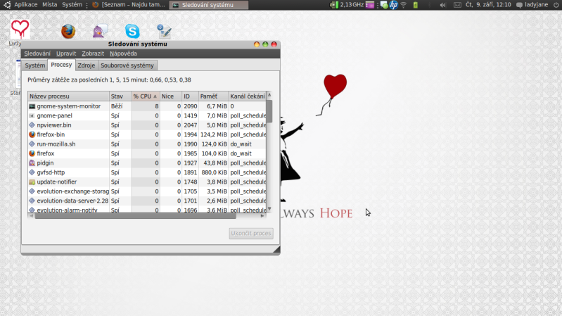 No, asi ne ... Nebo nevím ... Ve Sledování systému jsem nic nenašla a Terminál mi vyjel tohleto...