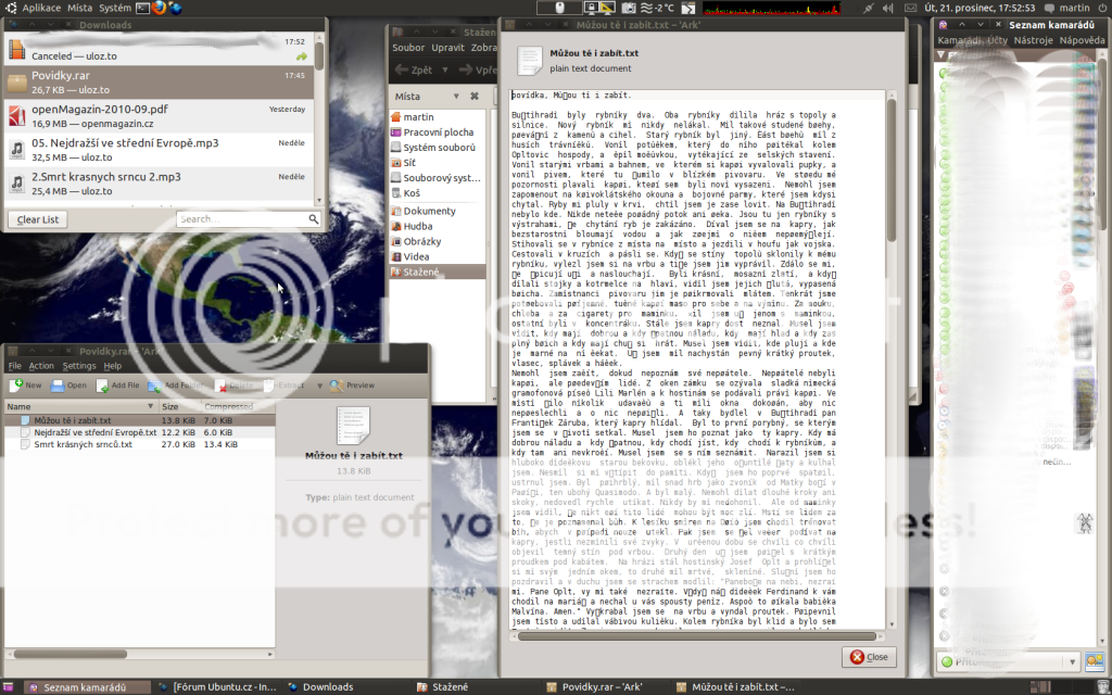 Schválně přidávám celý screen aby bylo vidět jak jsem to dělal, protože jsem začátečník.. Zkoušel jsem to rozbalení nechat jen na Ubuntu.. nejdřív to nešlo, tak jsem stahl z Centra Softwaru RAR a poté jsem sice balík otevřel, ale samotné soubory ne.. Poradíte mi prosím někdo co mám dělat proto, abych získal diakritiku?  :-\ Díky_