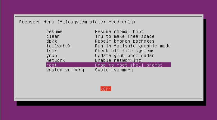V Grubu vyber Advanced options for Ubuntu. Následně zvol druhou položku odshora (recovery mode). Počkej, až to naběhne, pak zvol volbu network a potvrď, že chceš připojit / pro zápis. Pak vyber položku root a stiskni enter (až se tě to bude ptát na Enter nebo Ctrl+D). Pak spusť: (uživatelské jméno se zde dá vyluštit z hostname)